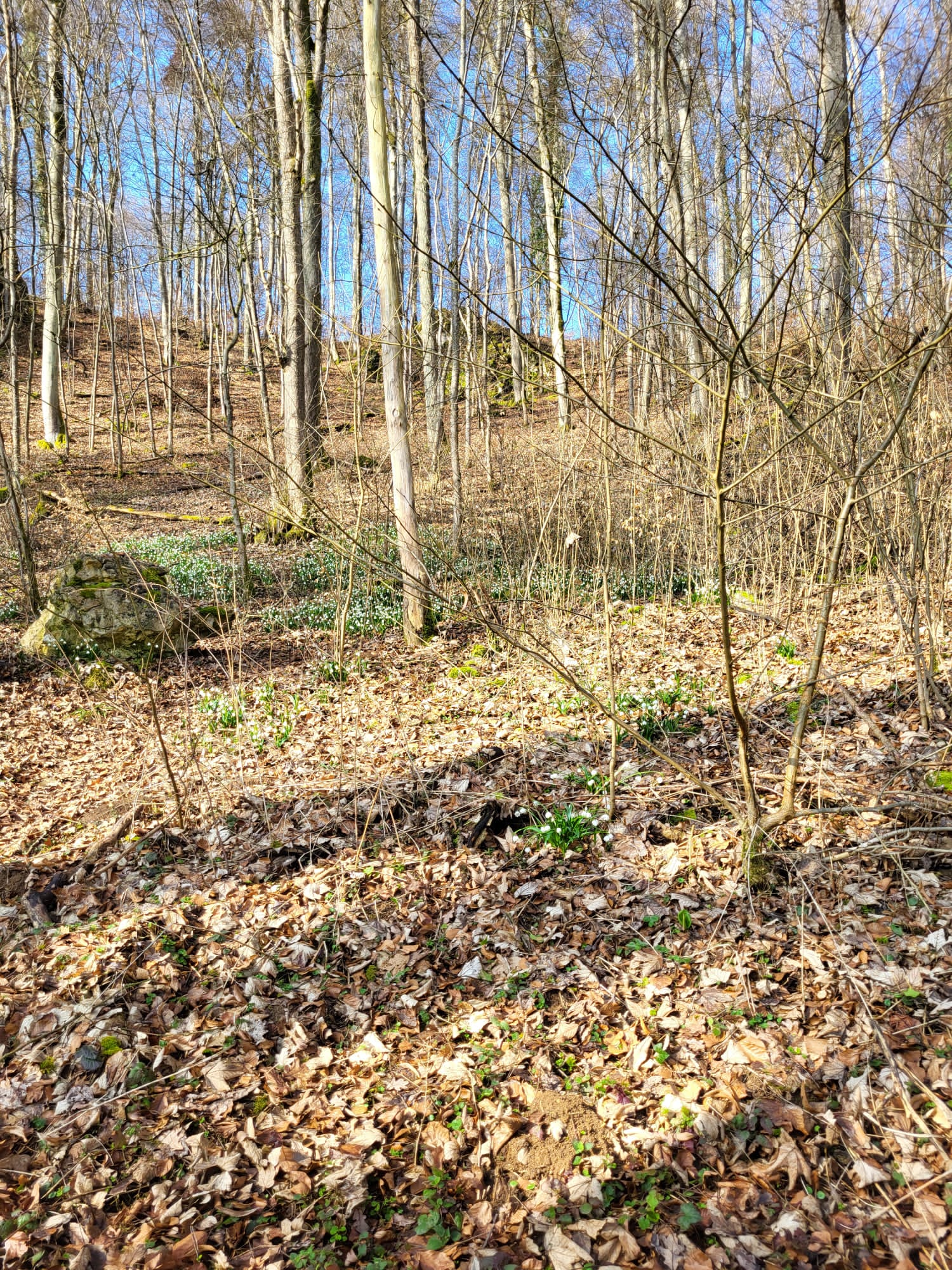Besonders jetzt im März zeigen sich wieder die zarten weißen Märzenbecher, die ihren Weg durch Schnee und das alte Laub gefunden haben.