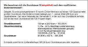 In einem letzten Schritt wird der Hebesatz der Gemeinde angewendet. Daraus ergibt sich die Grundsteuer (PDF) (875,5 KB).