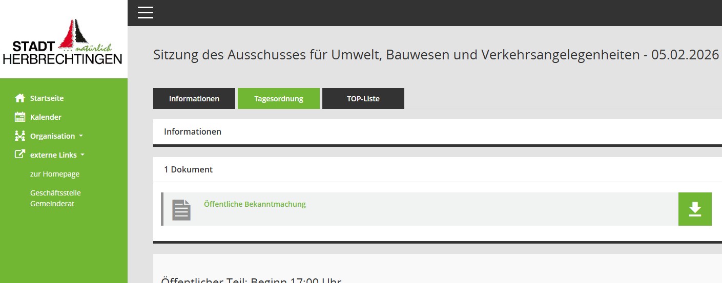 Zur öffentlichen Sitzung des Ausschusses für Umwelt, Bauwesen und